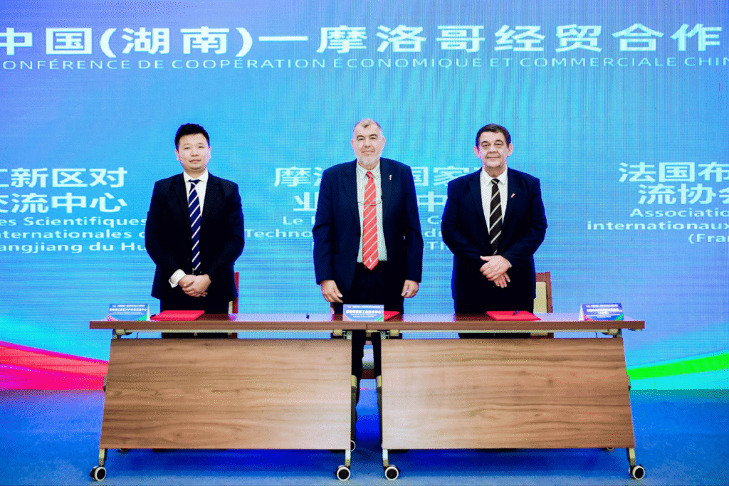 Le Centre d’échange scientifique et technologique étranger de la nouvelle zone de Xiangjiang, le Centre national marocain pour la technologie industrielle et l’Association Breizh China International ont signé un accord stratégique tripartite.